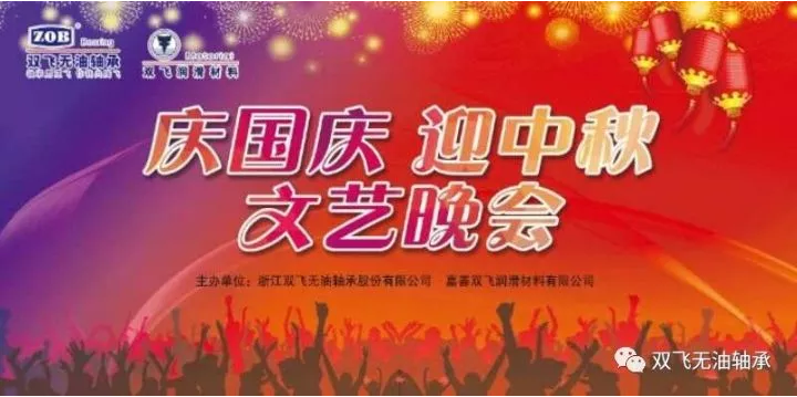 活動公告值此國慶中秋兩佳節(jié)來臨之際,為豐富員工業(yè)余生活,展現(xiàn)雙飛多樣的企業(yè)文化,給全體員工和當?shù)乩习傩仗嵩缢腿タ鞓访篮玫南矐c夜,浙江雙飛無油軸承股份有限公司、? 嘉善雙飛潤滑材料有限公司聯(lián)合嘉善縣群星藝術(shù)團籌辦的群眾文藝晚會專場即將拉開帷幕,特此公告。?演出時間:9月28日18:45-20:45?演出地點:雙飛軸承行政樓廣場? ?? &n