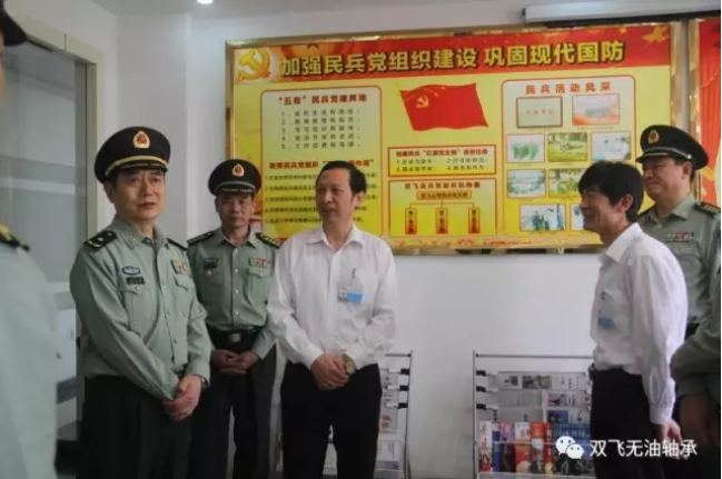 2017年5月19日下午,省委常委、省軍區(qū)政委王新海一行來我司視察指導(dǎo)基層精準抓建工作。王政委一行參觀了雙飛公司企業(yè)文化和人武部的戰(zhàn)備器材庫、人武部辦公室、黨員活動室、民兵活動室等場所。王政委對雙飛公司重時企業(yè)文化,把人武部工作與企業(yè)文化結(jié)合起來,進行思想教育工作非常滿意,他強調(diào):雙飛公司人武部建設(shè)要通過不停的學(xué)習(xí)來提高民兵的責(zé)任意識,要讓每個民兵都知道保家衛(wèi)國,服從指揮是民兵的義務(wù)。要通過多種形